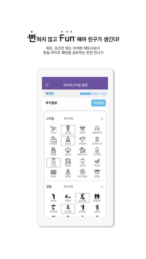 5. 라이프스타일 설정에서 스타일, 성향, 취미, 스포츠, MBTI 항목을 꼭 작성해주세요.