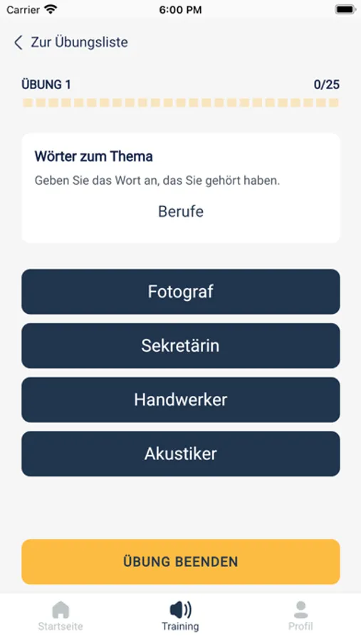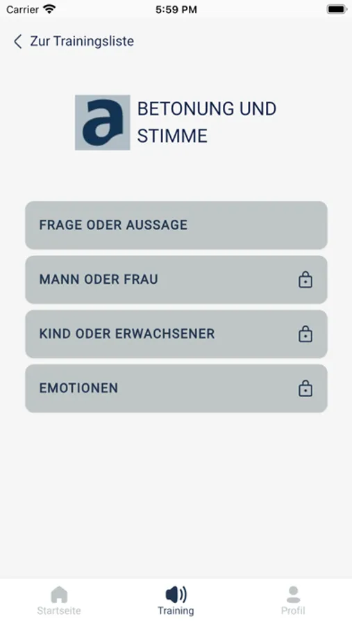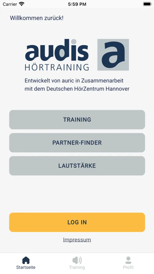 In der Grundversion der App sind direkt nach der Installation nur eingeschränkt Übungen freigeschaltet. Um diese App im vollen Umfang nutzen zu können, suchen Sie einen kooperierenden Hörexperten (z.B. HNO-Arzt oder Akustiker) in Ihrer Nähe auf, um dort Ihre App mit dem Backend Ihres Hörexperten zu koppeln.