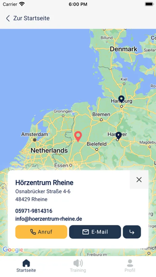 Eine Karte auf der Sie den nächstgelegenen Experten suchen können, ist in der App enthalten. Anschließend können Sie gemeinsam mit ihrem Hörexperten einen auf ihren Hörverlust individualisierten Trainingsplan erstellen und Ihre Fortschritte auswerten.