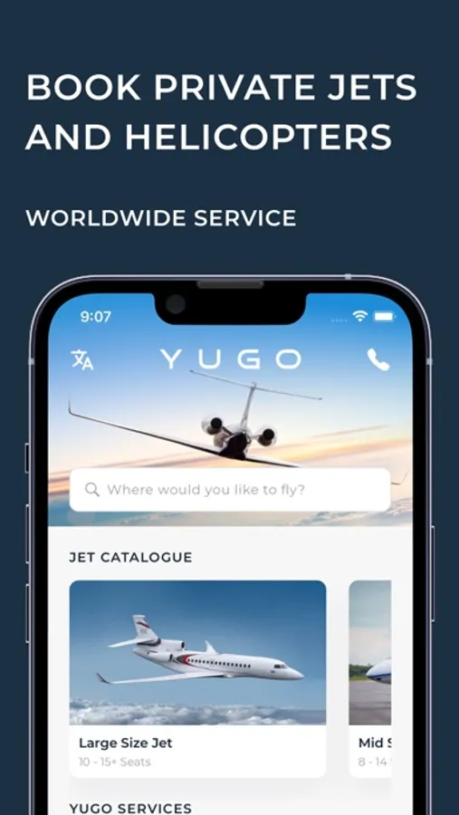 The Yugo Plus app provides its users with a simple way to search, book, and fly private jets and helicopters worldwide.