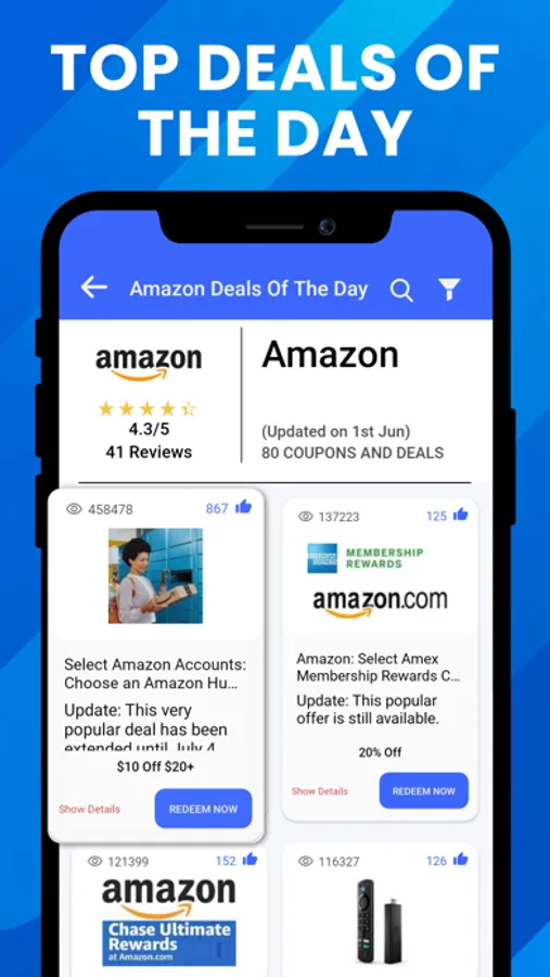 Deals of the Day: Browse the best offers of the day quickly to enjoy instant discounts on desired brands and products.