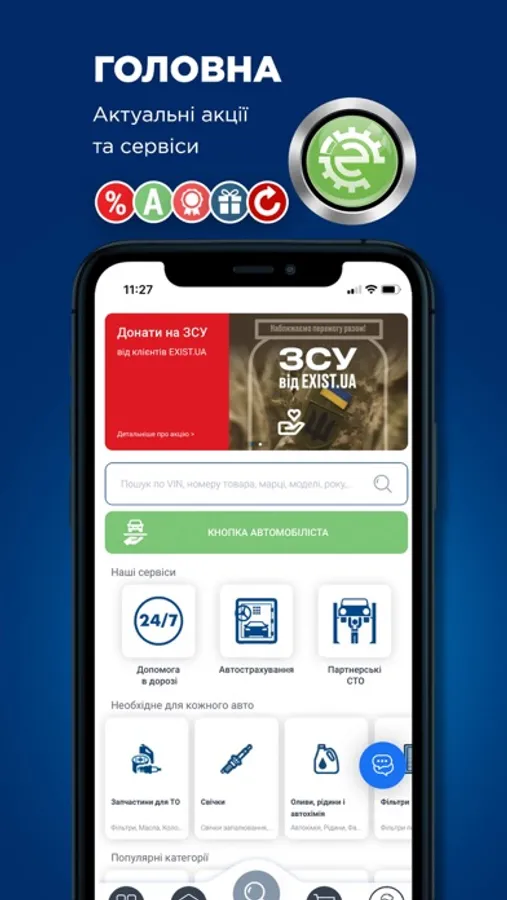 EXIST.UA – найбільший український інтернет-магазин автотоварів та сервісів. Працює з 2008 року, має мережу з 40+ офісів продажу в більшості міст України.