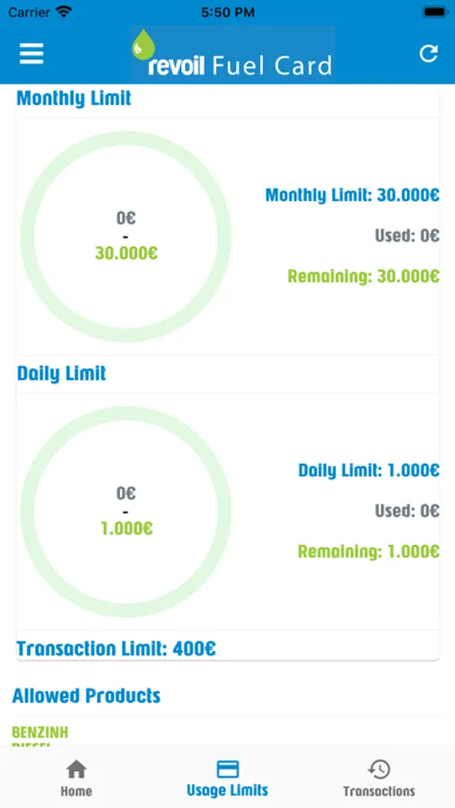 Κάθε επαγγελματικό όχημα είναι συνδεδεμένο με μία Revoil Fuel Card σε πλαστική μορφή ή/& στην εφαρμογή κινητού.
