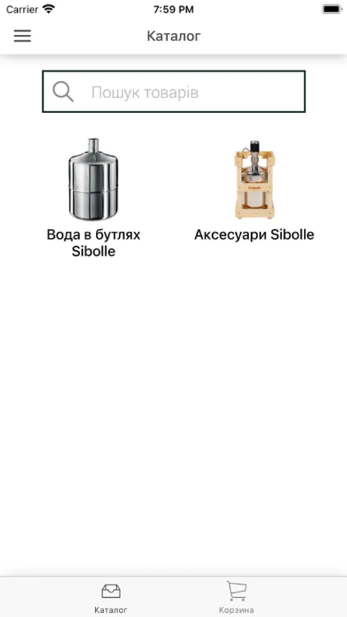 Мобільний додаток призначений для зручного замовлення доставки води в бутлях 18,9 л з нержавіючої сталі Sibolle і всієї лінійки супутніх товарів і аксесуарів Sibolle.