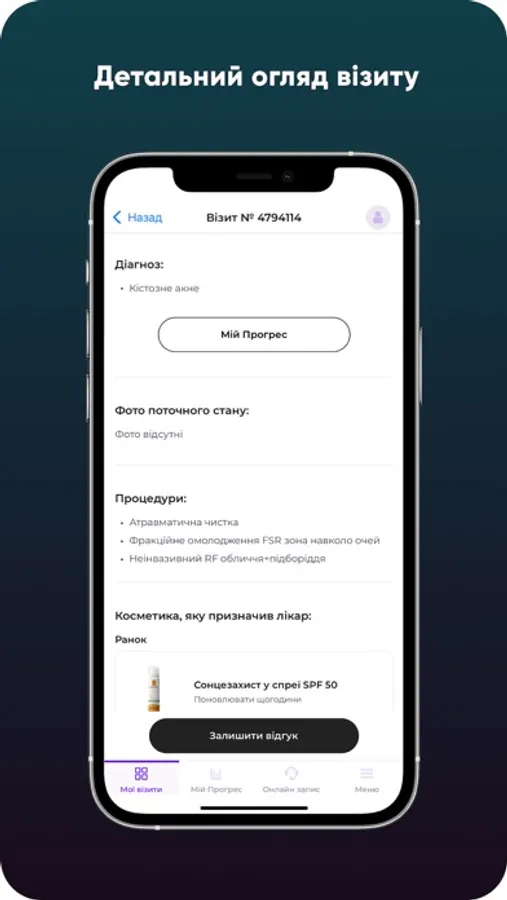 IDERMIC APP - це мобільний застосунок для клієнтів центру естетичної медицини IDERMIC. Завантаживши застосунок у вас буде змога відслідковувати свої візити, переглядати призначення лікаря, та слідкувати за прогресом змін. Через застосунок ви зможете отримувати найактуальнішу інформацію про спеціальні пропозиції нашого центру, та замовляти онлайн призначені лікарем засоби.