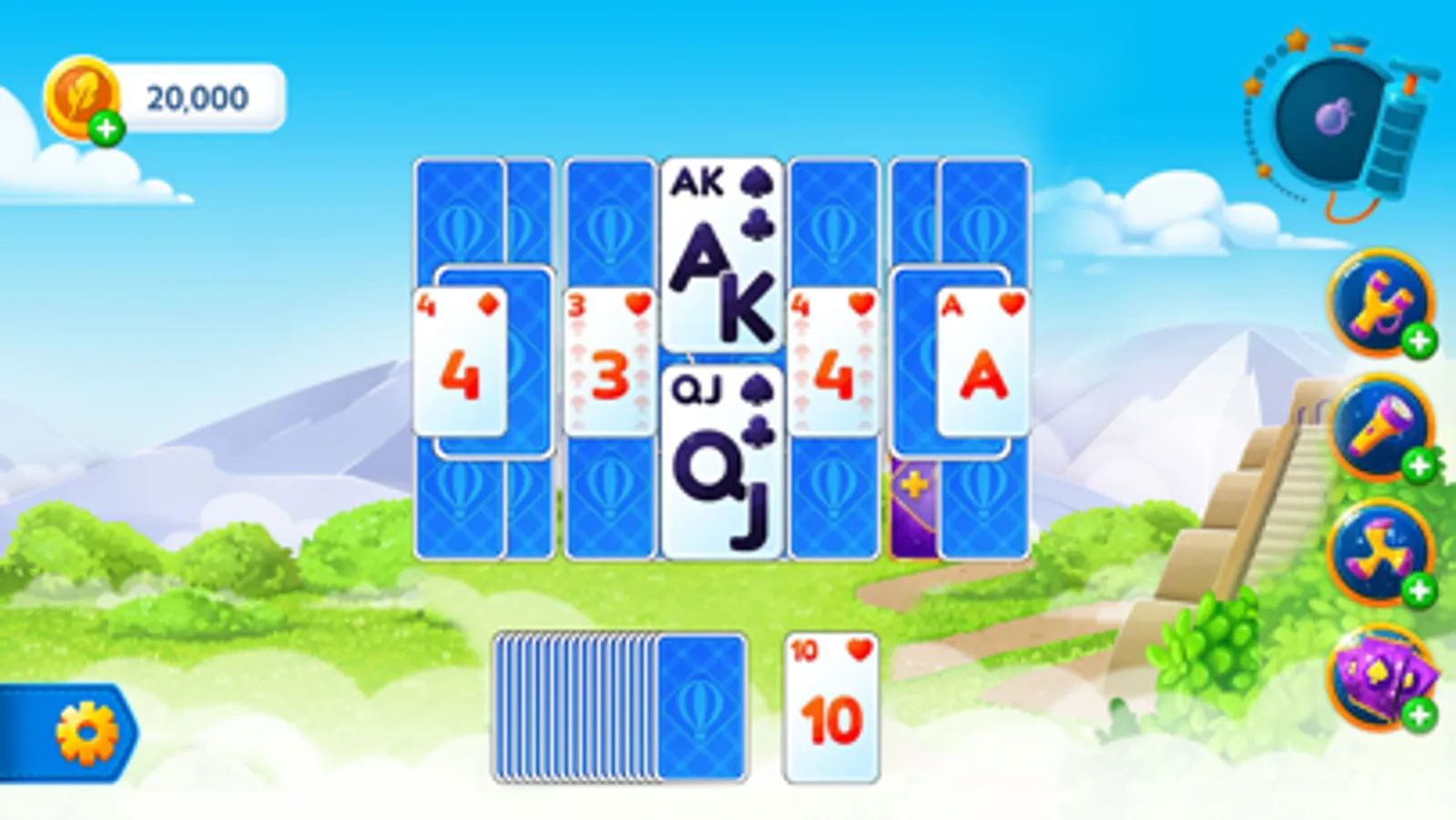 Complete tripeaks solitaire levels to build up and unveil each city. Once the city is built, fire up the hot air balloon and take off to your next destination. Each destination is packed with exciting solitaire tripeaks games with boosters, powerups, and bonus card game challenges!