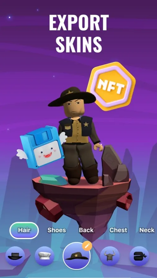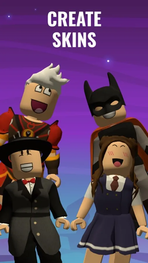 Big collection of assets can help you to create splendid unique skins. You can change head, body, legs, accessories, colors and more! Select from more than 30 prepared skins for boys and girls. You can edit any part of prepared skin if you don't like it. Run your skin in Playground. This is complete game where you can run and jump. Play any emotion to check animations of your character. Export your model and share with the world!