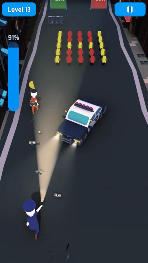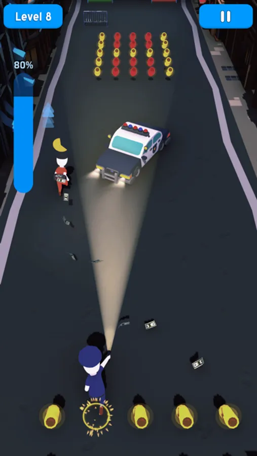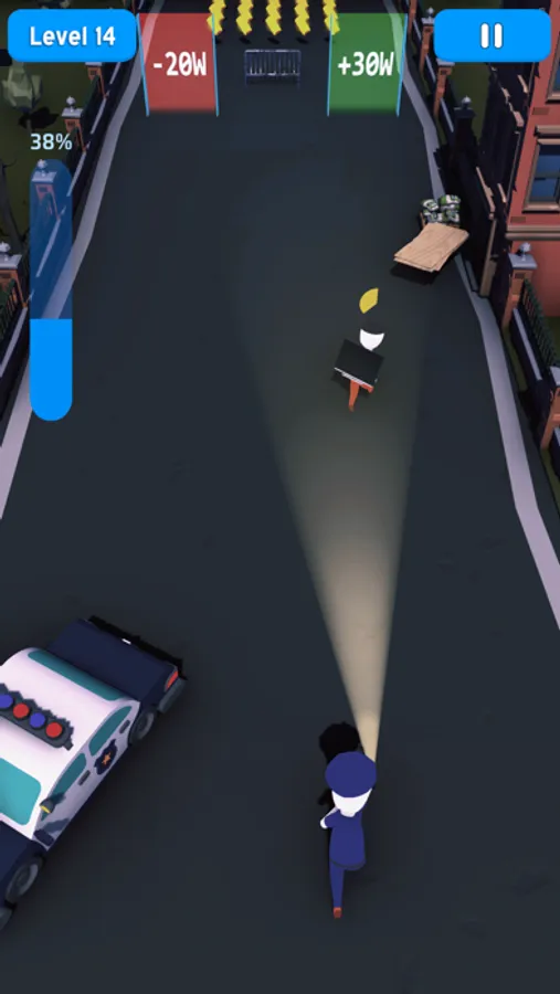 The task is simple: Get to the crime scene, identify the criminal, and start chasing him before its too late. It's night time, so use your handy flashlight to reveal your target and arrest him. Don't forget to pick up some batteries to charge your flashlight, though. You need to expose him long enough to capture.
