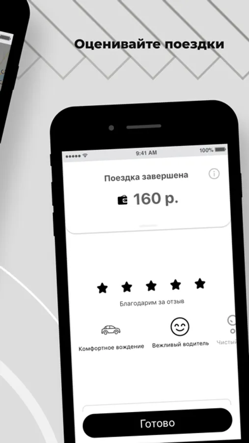 Поставьте оценку водителю, напишите отзыв или выберите реакцию из готовых шаблонов. Прикрепите фотографию к отзыву, оставьте чаевые или посмотрите детализацию платежей после поездки.