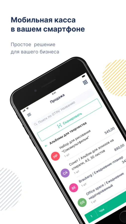 Онлайн-касса iOS подходит для любой розничной точки с маленькой площадью: она умеет все необходимое, а места почти не занимает. На торговой точке не придется ставить громоздкое железо — моноблок, кассовый аппарат, чековый принтер. Не понадобится даже сканер штрихкодов: его заменяет камера мобильного устройства.