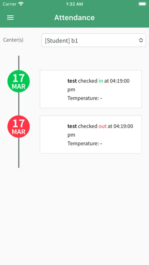 Daily attendance and temperature data are also kept in the app.