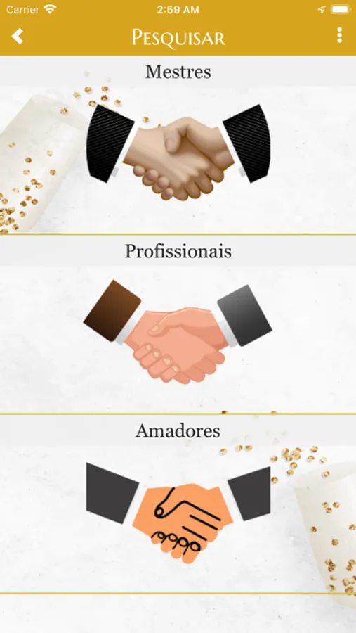 Masters: são profissionais que carregam consigo uma bagagem de experiências e cursos extras, tem ótimas referências e são exemplos na atividade que exercem. É o profissional qualificado para eventos especiais."