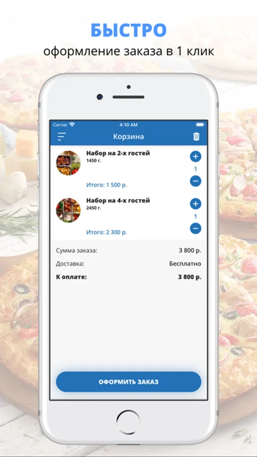 Скачивайте наше приложение, оформляйте заказ и наслаждайтесь любимой едой, где бы Вы ни были! Приятного аппетита!