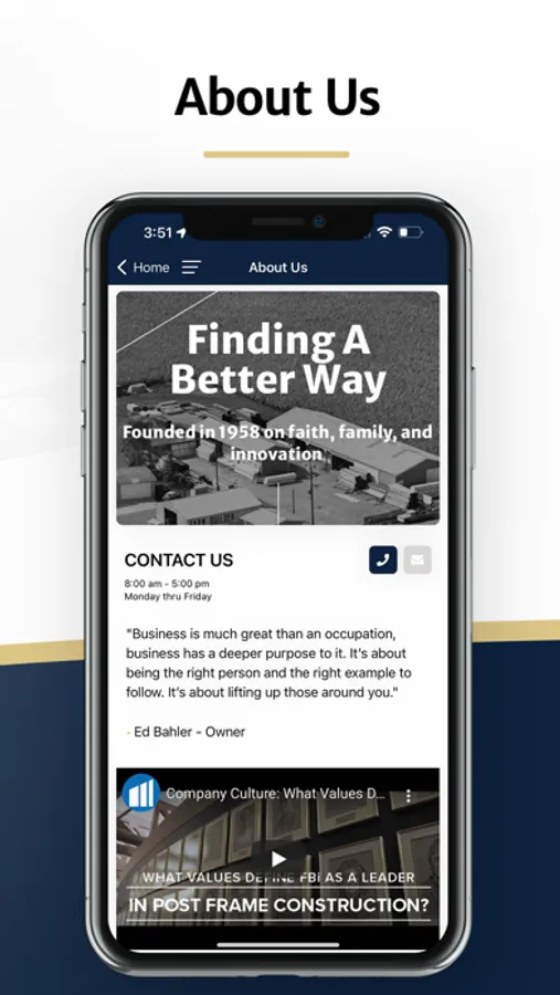 At FBi Buildings we build with confidence and unmatched quality. Get all the support you need in our Bahler Group app with easy access to career opportunities, our customized product learning center, client resources, blog articles, and more.