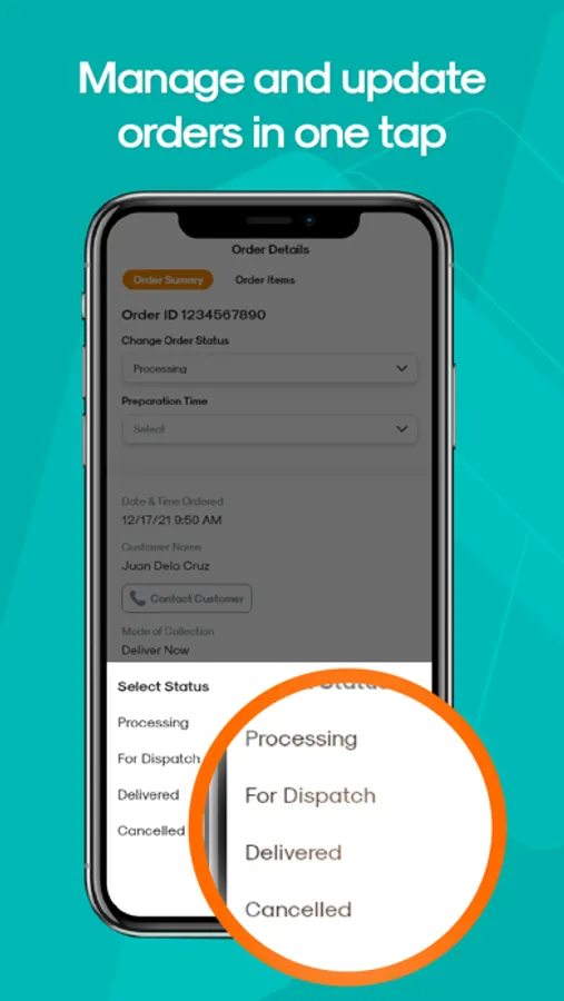 Easily manage orders and customers' expectations in just one tap. Customers get an SMS on the status of their orders.