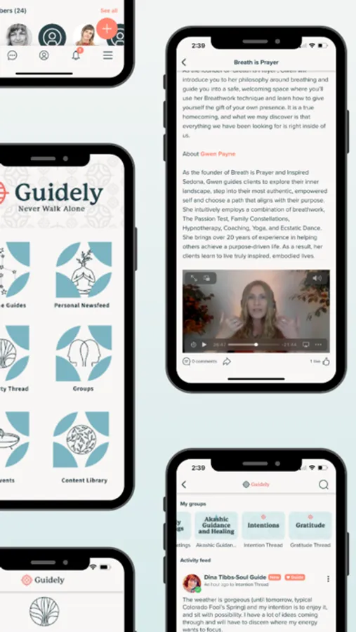 Whether you’re on the path or just curious about working with a coach or mentor, Guidely offers expert guidance and community to overcome challenges, find clarity and purpose, and improve your mental health, relationships and wellbeing.