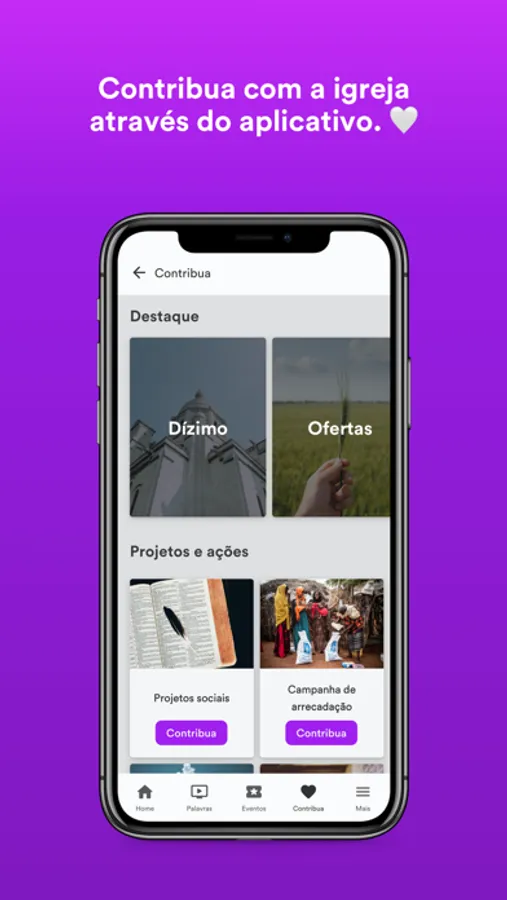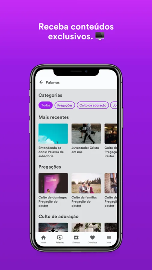 - Siga a agenda e fique por dentro de tudo que acontece na igreja, inscreva-se em eventos e tenha seus ingressos sempre com você.