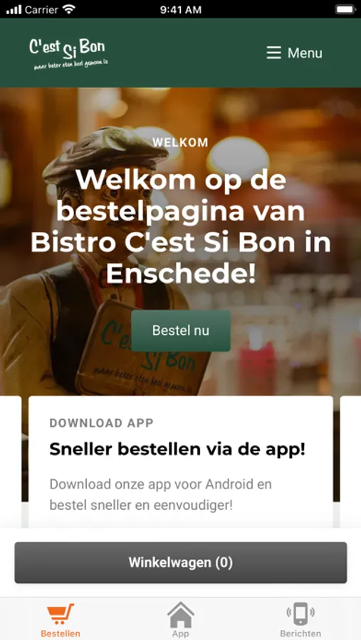 Download onze app en blijf op de hoogte van het laatste nieuws en de nieuwste acties, aanbiedingen en kortingen. Via onze app kunt u onze menukaart bekijken en direct vanaf uw telefoon uw bestelling plaatsen. U kunt via de app ook met iDEAL betalen!