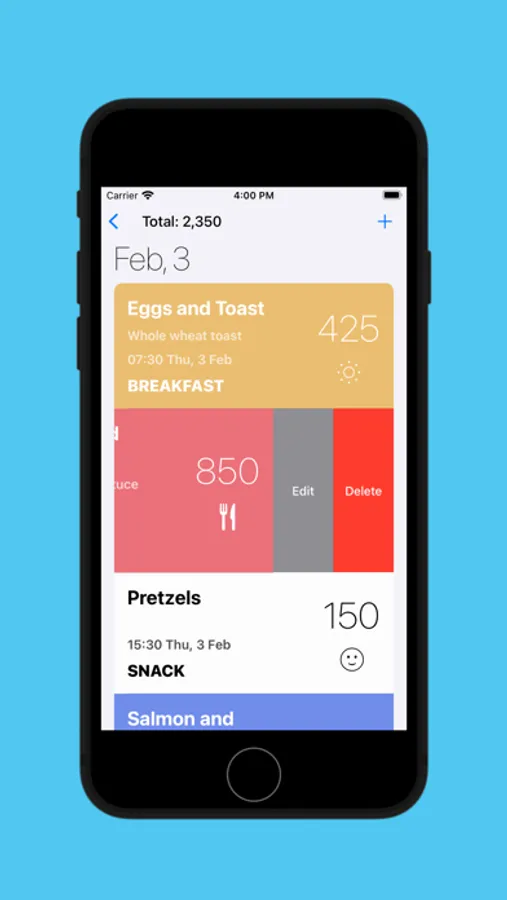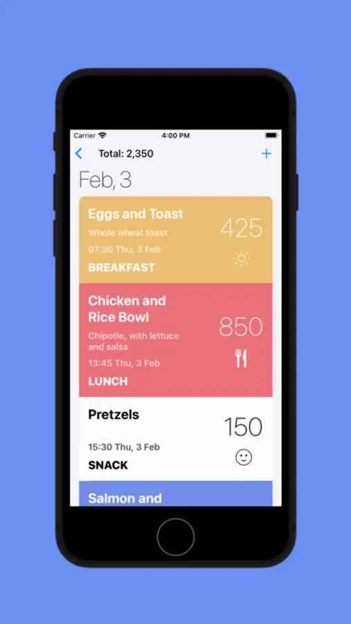 Simple but effective, use this tool to keep a general idea of what you eat in a day. This app does not have any fluff in it, like searching for calorie amounts, or sharing with your friends, just a simple and effective method to keeping a personal log of your calorie intake.