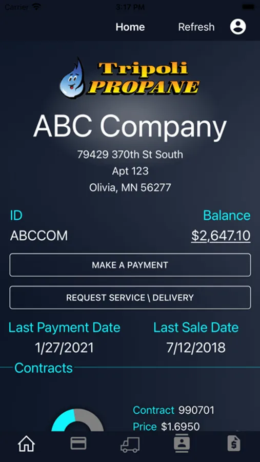 Information at your fingertips! This app gives you direct access to your account balance, location and contract information. It also gives you the ability to store and process payment and request service work and deliveries directly through the app.