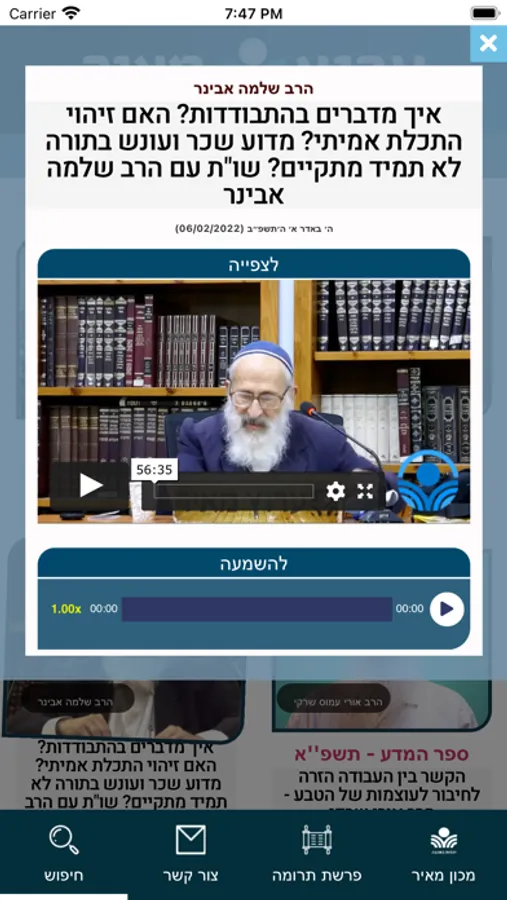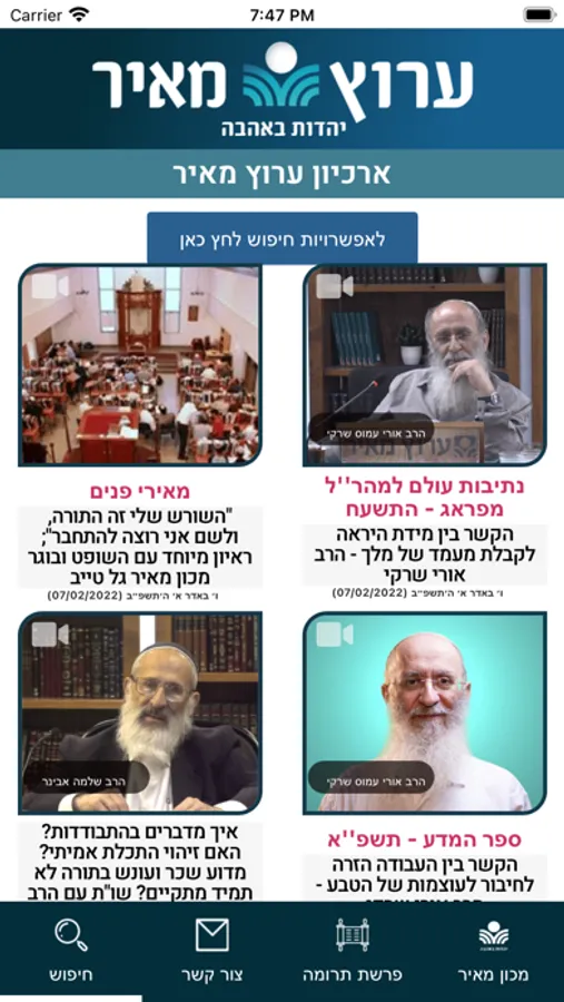 ניתן לצפות ולהאזין לשיעורי פרשת שבוע, חגים סדרות ביהדות ועשרות אלפי תכנים נוספים.