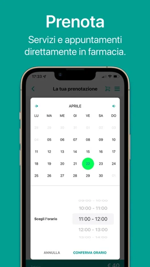 Organizzare il proprio tempo è fondamentale, per questo con l’APP Farmacia di Mare è possibile prenotare giorno e ora dei servizi erogati dalla farmacia verificandone le disponibilità.