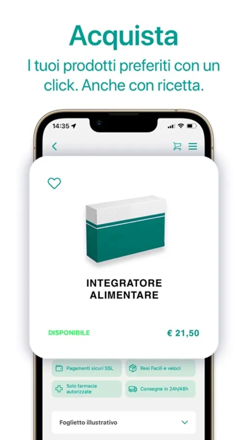 Avrai la possibilità di sapere in tempo reale la disponibilità di un prodotto, decidere se comprarlo o passare in farmacia per il ritiro.