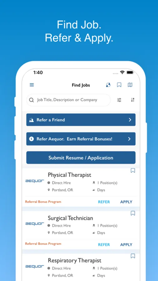 Aequor's self-service technology matches you with the right travel nursing and allied health jobs for the career path you want. Create your profile, search and apply for jobs, get paid for referring friends, set job alerts, save favorites, and let us do the rest.