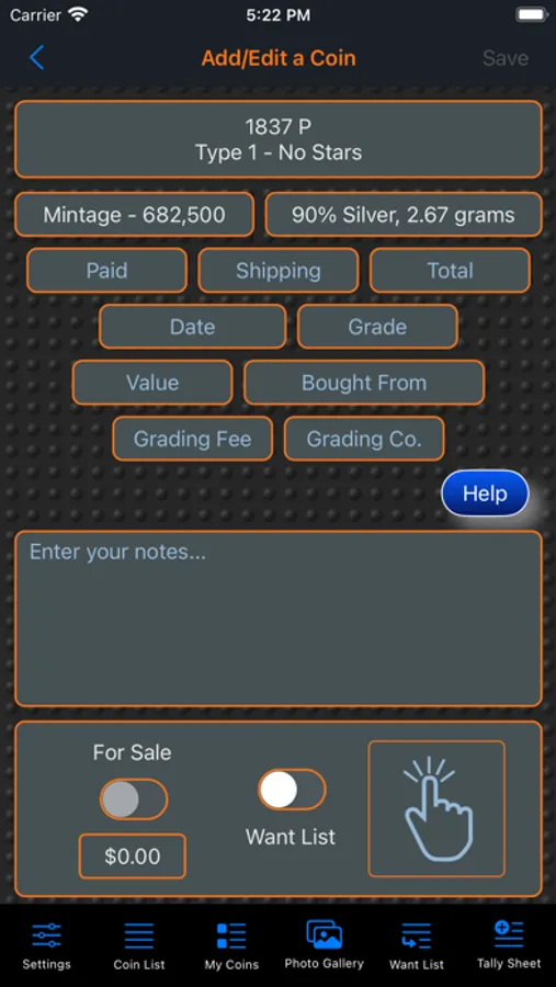 Please keep in mind that the app is intended for organizing and tracking your coin collection. Therefore it does not contain information regarding how to grade coins.
