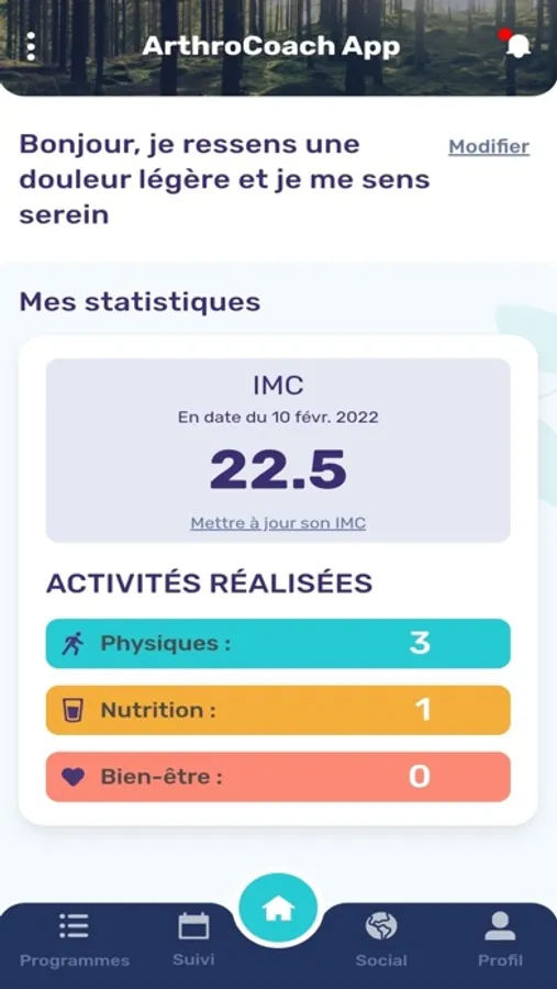 Nos programmes activités physiques sont proposés à titre informatif. Nous vous recommandons de consulter un médecin ou un kinésithérapeute avant de commencer tout programme d’activités physiques. Les conseils figurant sur ArthroCoach App ne sauraient en aucun cas remplacer une consultation auprès d'un praticien qualifié.