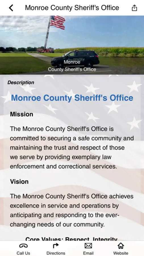 The Monroe County Sheriff's Office is committed to securing a safe community and maintaining the trust and respect of those we serve by providing exemplary law enforcement and correctional services. On behalf of the men and women of the Monroe County Sheriff's Office, welcome to our app. This app is for the employees and family members of the Monroe County Sheriff's Office as well as the community it serves. It contains information about our department as well as safety and crime prevention tips. Monroe County Sheriff's Office employees will have access to a full range of wellness tools.
