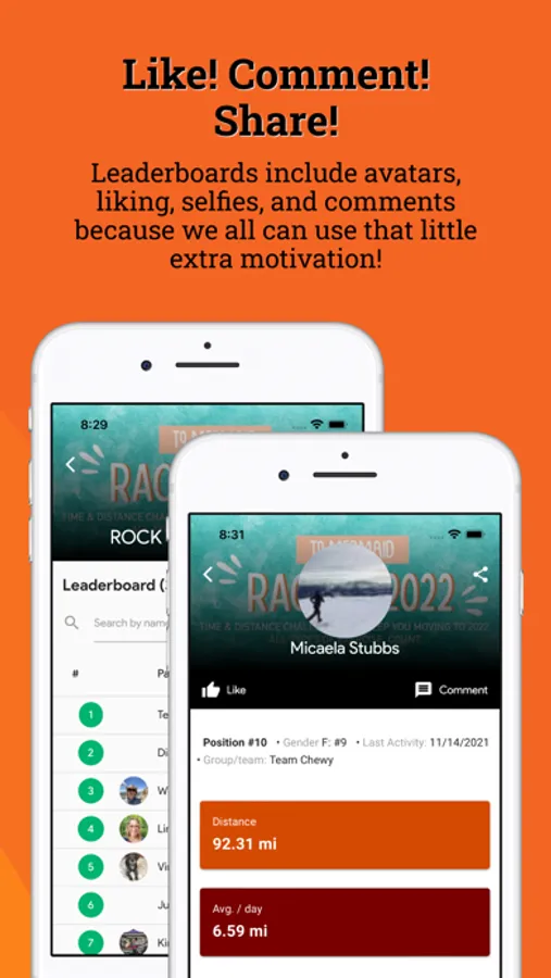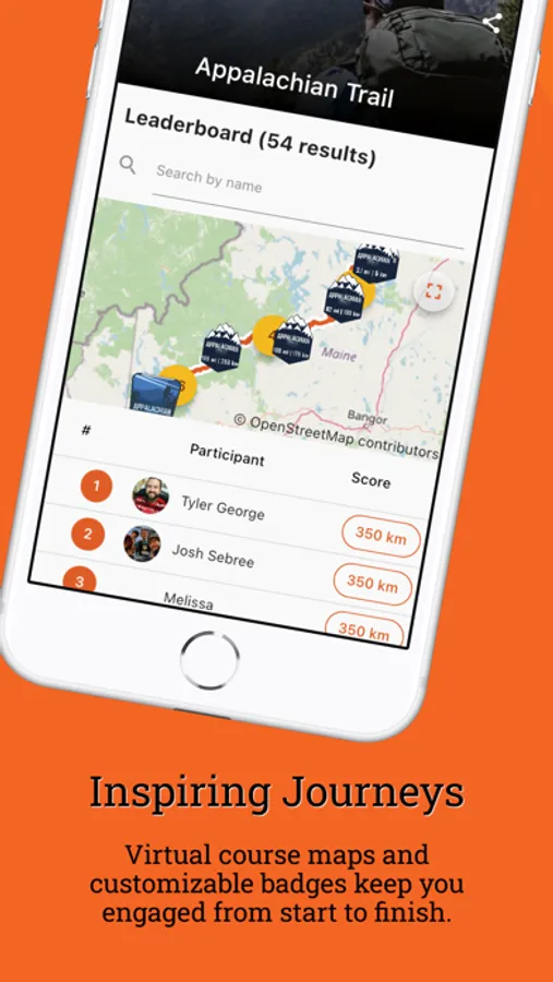 Show the progress of all participants on a virtual course map where participants move from start to finish based on their real-time progress.