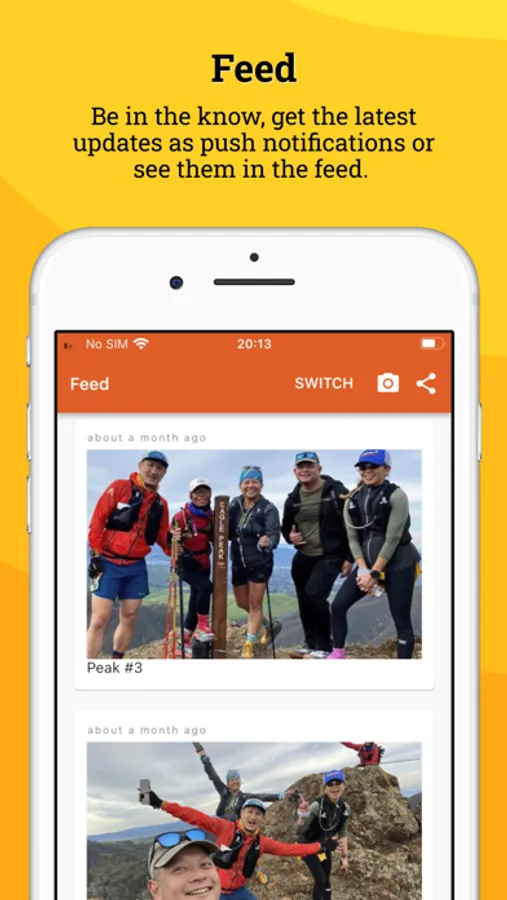 Check the progress and latest updates on the event feed. Updates can be sent as push notifications to ensure all participants of the event are aware of the latest updates. The feed can display updates, photos, selfies, results, and other relevant information during the event.