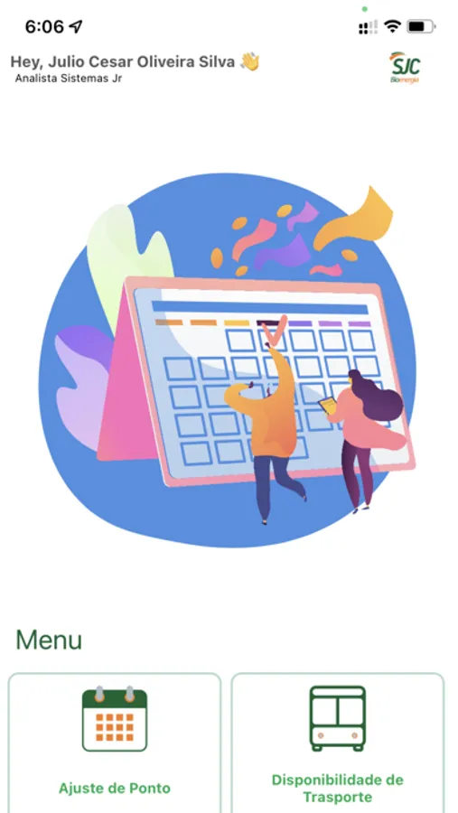 Através do aplicativo você tem acesso ao ajuste de ponto, reportar motivos de exceções e visualizar motivos de atrasos informados.