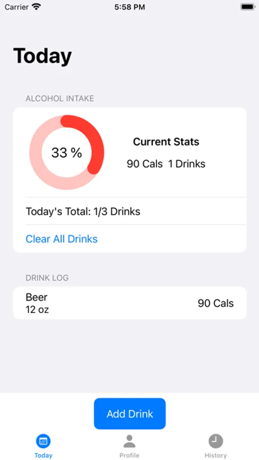 - Sync with Apple HealthKit to record number of drinks and calories consumed