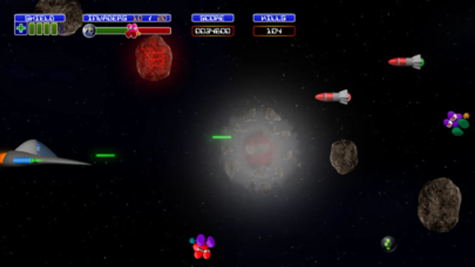 Rid the galaxy of menacing Evil Shrooms in this fast-paced, action-packed, arcade-style space shoot-em-up. Intense button-smashing action, vibrant graphics, and an utterly insane swarm of enemies and bosses await you.