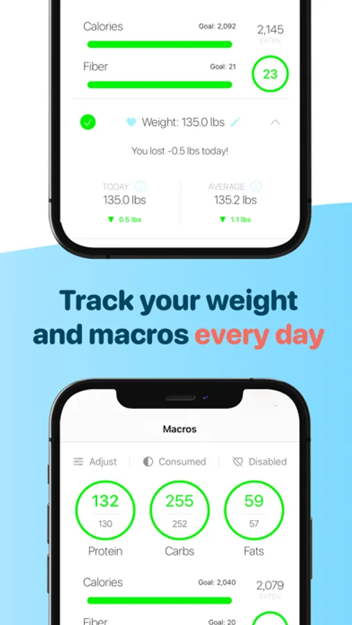• Choose from Weight Loss, Muscle Gain, Reverse Diet, and Maintenance programs