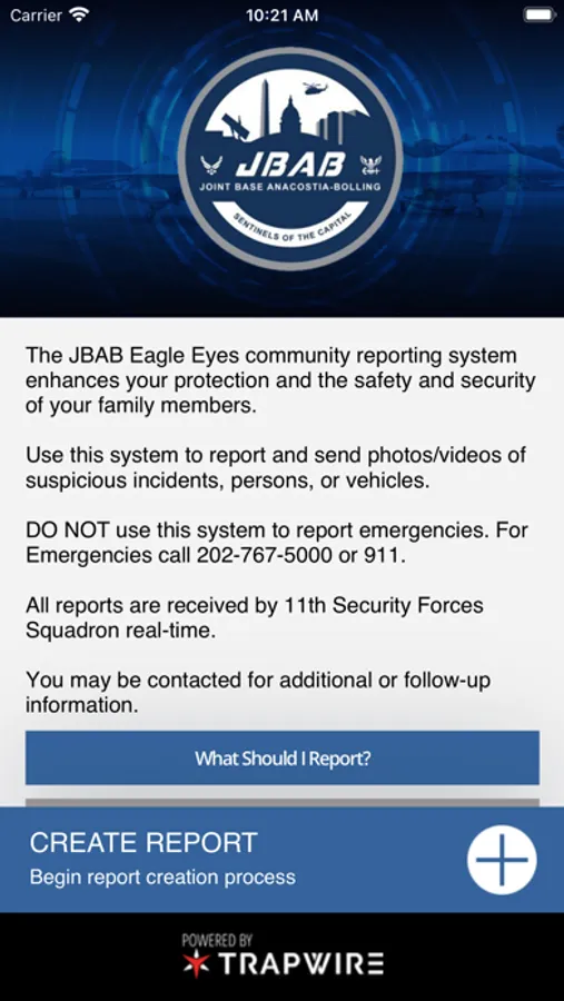 With the JBAB Eagle Eyes app, users can report suspicious activities and incidents that may be indicators of terrorist or other criminal intent.