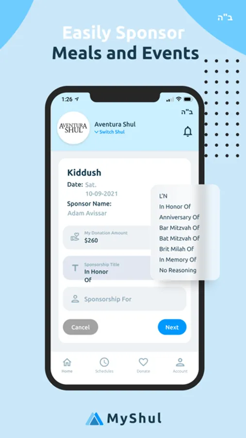 MyShul app keeps you up-to-date with the newest schedules and information on your favorite Shuls that are on MyShul.