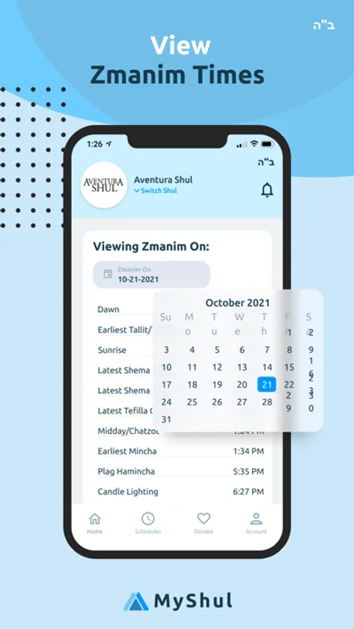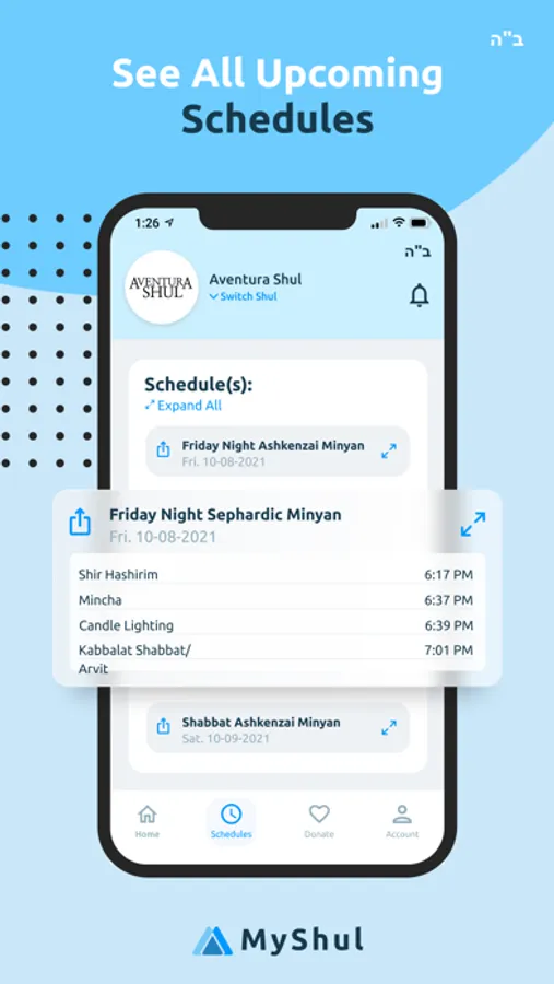 MyShul app keeps you up-to-date with the newest schedules and information on your favorite Shuls that are on MyShul.