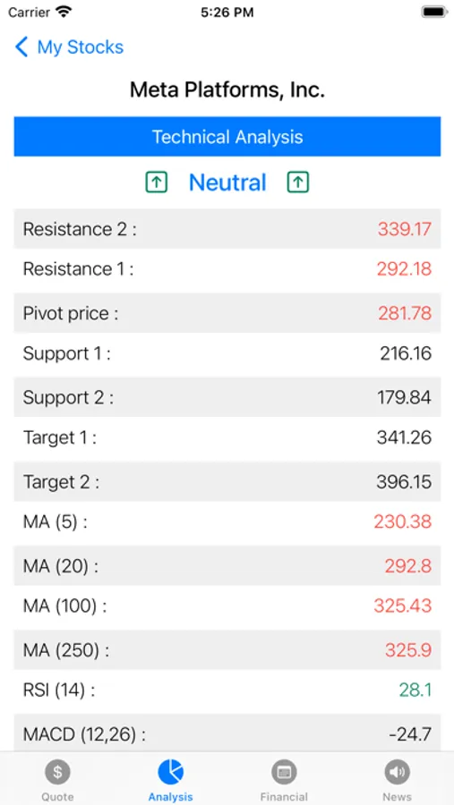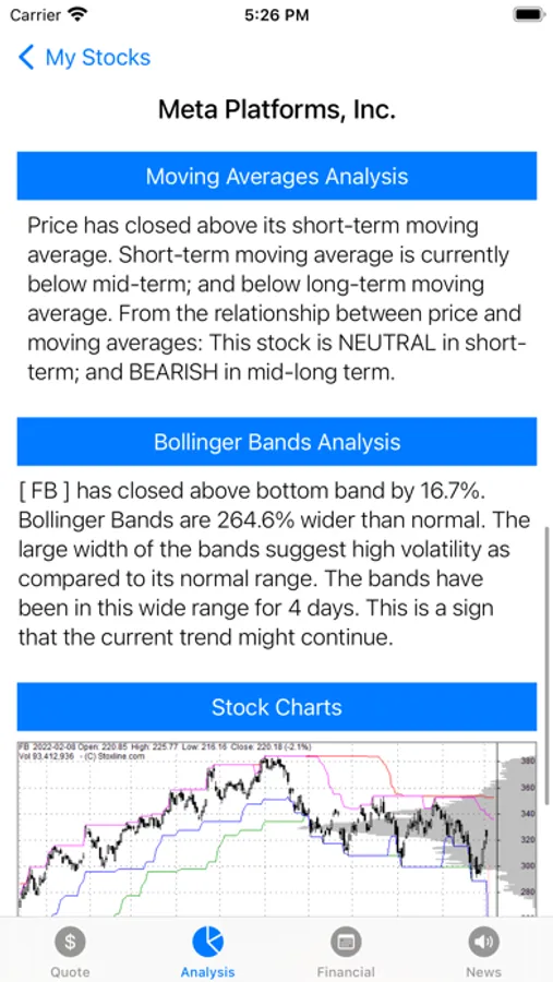 3. Stock technical analysis, includes major stock technical indicators' values.