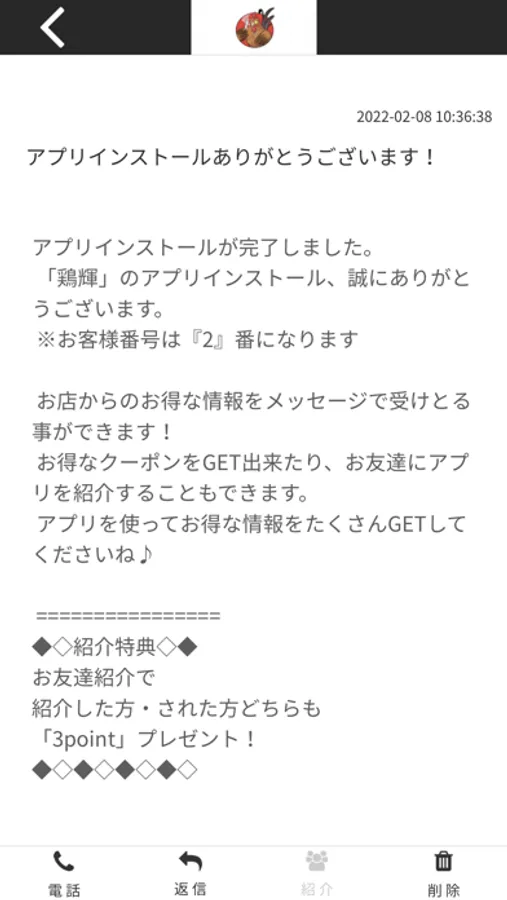 鶏輝のアプリをSNSを通じてお友達に紹介する事ができます。