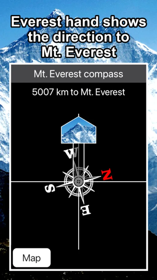 “Everest Compass” is a compass that shows the direction and distance to Mt. Everest.