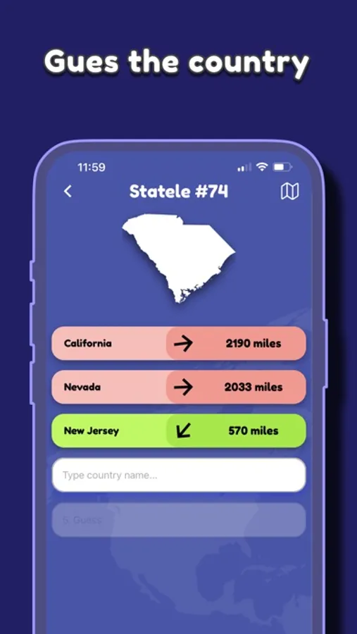When you make your first state guess in Statele, the game tells you how close was your guess is in miles and shows the direction in the compass to make your new guess.