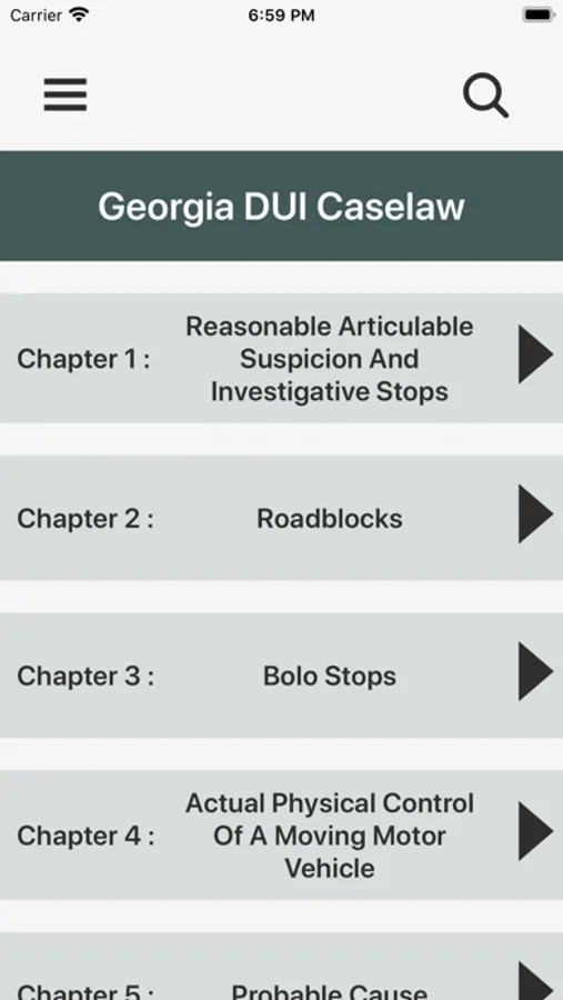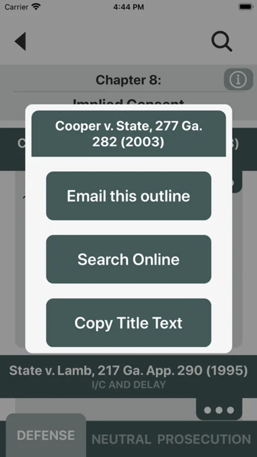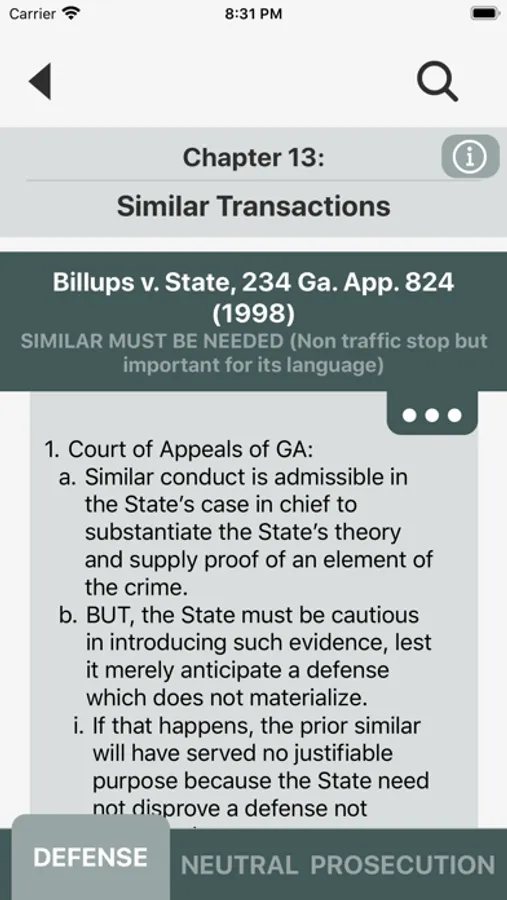 Inspired by the original book, "Defending DUI: Case Outline," The Georgia DUI Case Law App is an easy to use case outline reference guide. Whether you are a practicing lawyer, support staff, law student, or just simply curious about one of the most complex areas of Georgia law, this App can point you to the most up to date, pertinent, and relevant DUI cases decided in the State of Georgia. Whether you are researching law to help your case, or you need to quickly find authority to support your position, or if you just want to learn, the App is designed for quick navigation both inside and outside the courtroom.