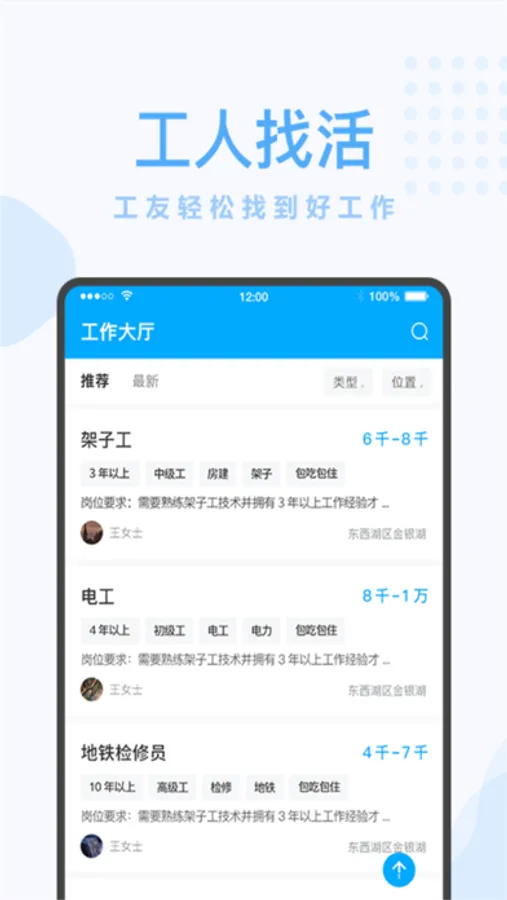 【操作简单】不限地点,手机各大商店下载,一键登录,招工找活不再受人脉、时间、地点限制
