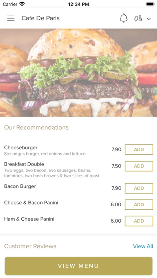 Here at Cafe De Paris, we are constantly striving to improve our service and quality in order to give our customers the very best experience. As a result, we are finally proud to unveil and introduce our latest improvement, our new online ordering app! You can now relax at home and order your favourite, freshly prepared meals from Cafe De Paris in Stockmoor Village. You can even pay online!