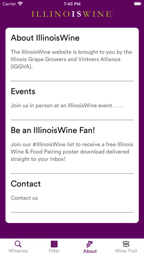 Explore wineries and plan your next winery trip with the Illinois Wine App.