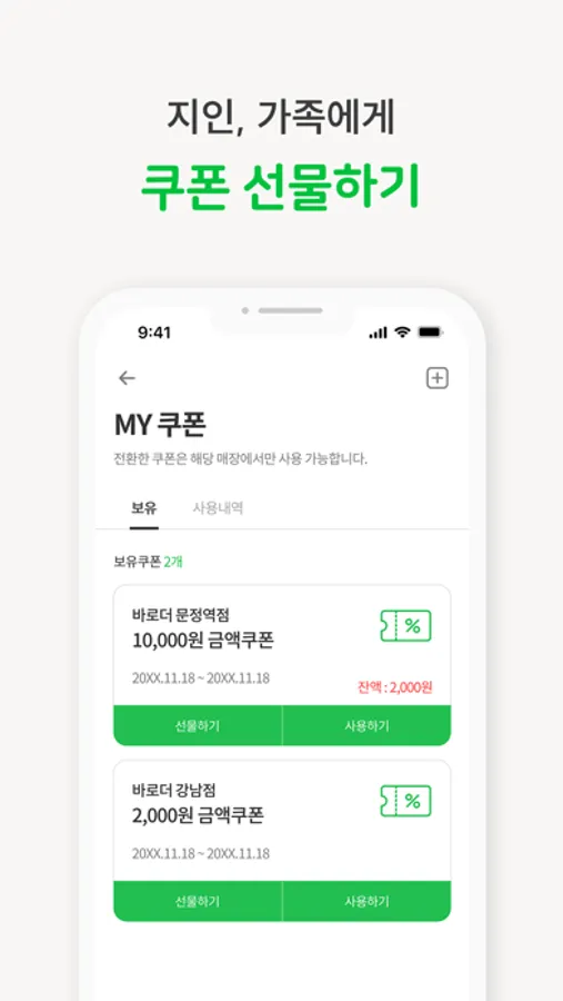 열심히 모은 나의 쿠폰, 사랑하는 주변 지인과 함께 나눠요.