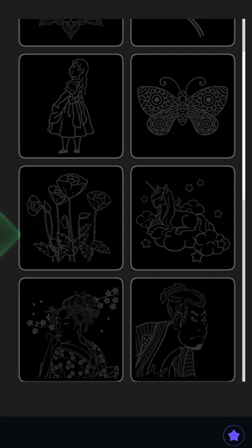 With this app, you can create your own scratch art by using preliminary sketches and various patterns.